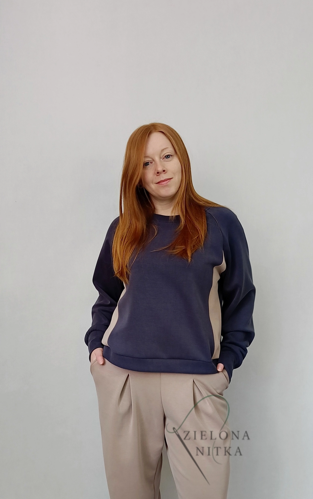 Bluza posiada rękawy raglanowe zakończone elastycznym ściągaczem, dzięki czemu doskonale dopasowuje się do sylwetki i zapewnia swobodę ruchów. Okrągły dekolt oraz dół bluzy również wykończone są ściągaczem, co podkreśla jej sportowo-casualowy styl i zwiększa komfort użytkowania.