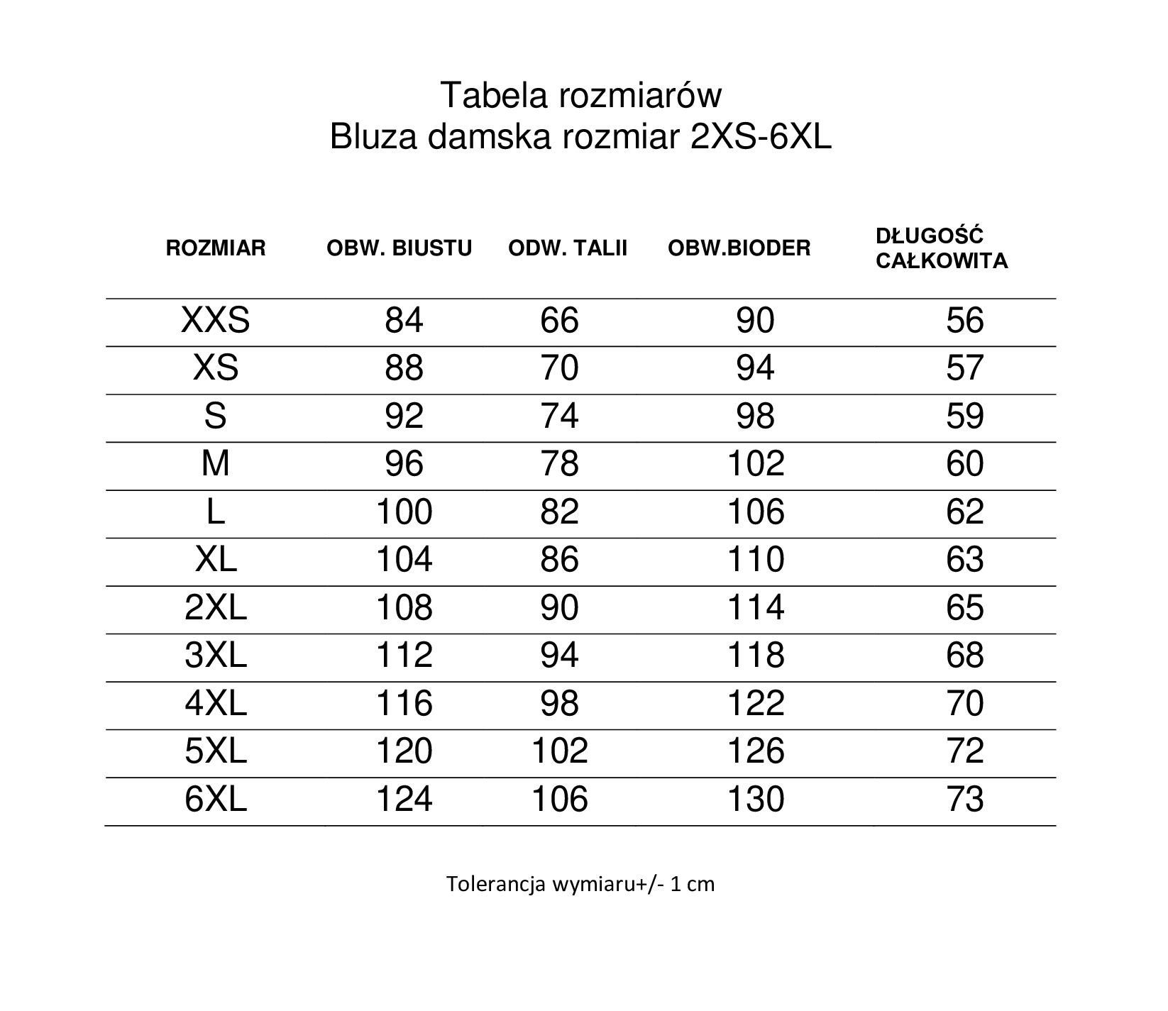 Wymiary w tabeli są wymiarami sylwetki (mierzymy siebie)