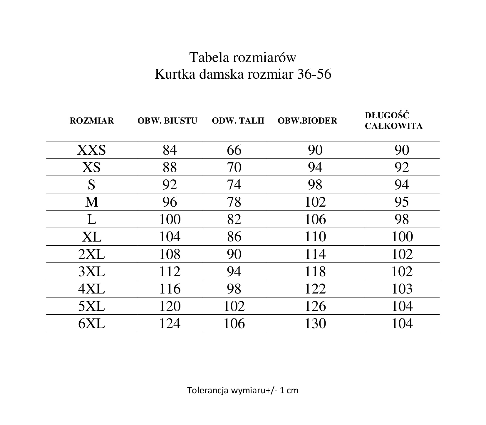 Wymiary w tabeli są wymiarami sylwetki (mierzymy siebie)