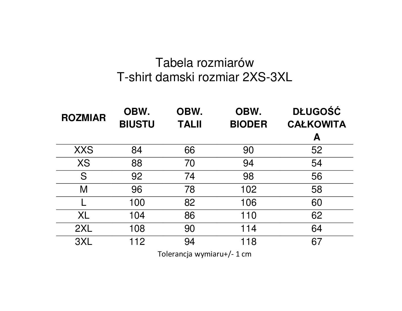 Wymiary w tabeli są wymiarami sylwetki (mierzymy siebie).
