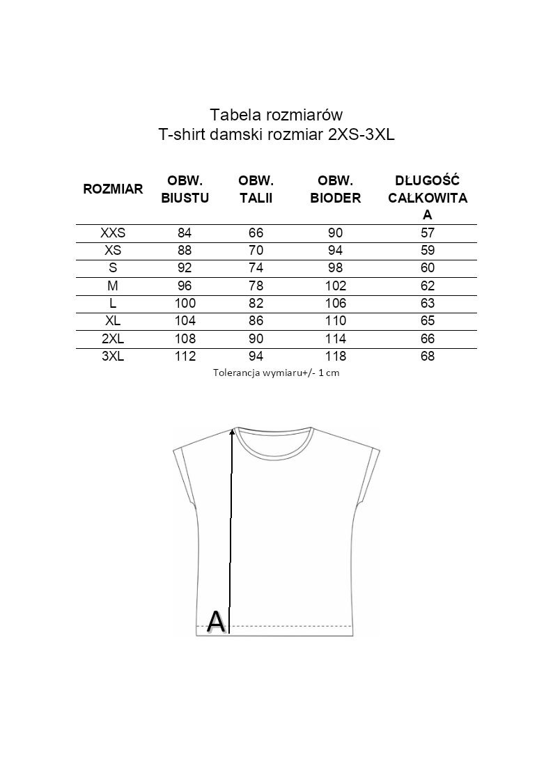 Wymiary w tabeli są wymiarami sylwetki (mierzymy siebie).
